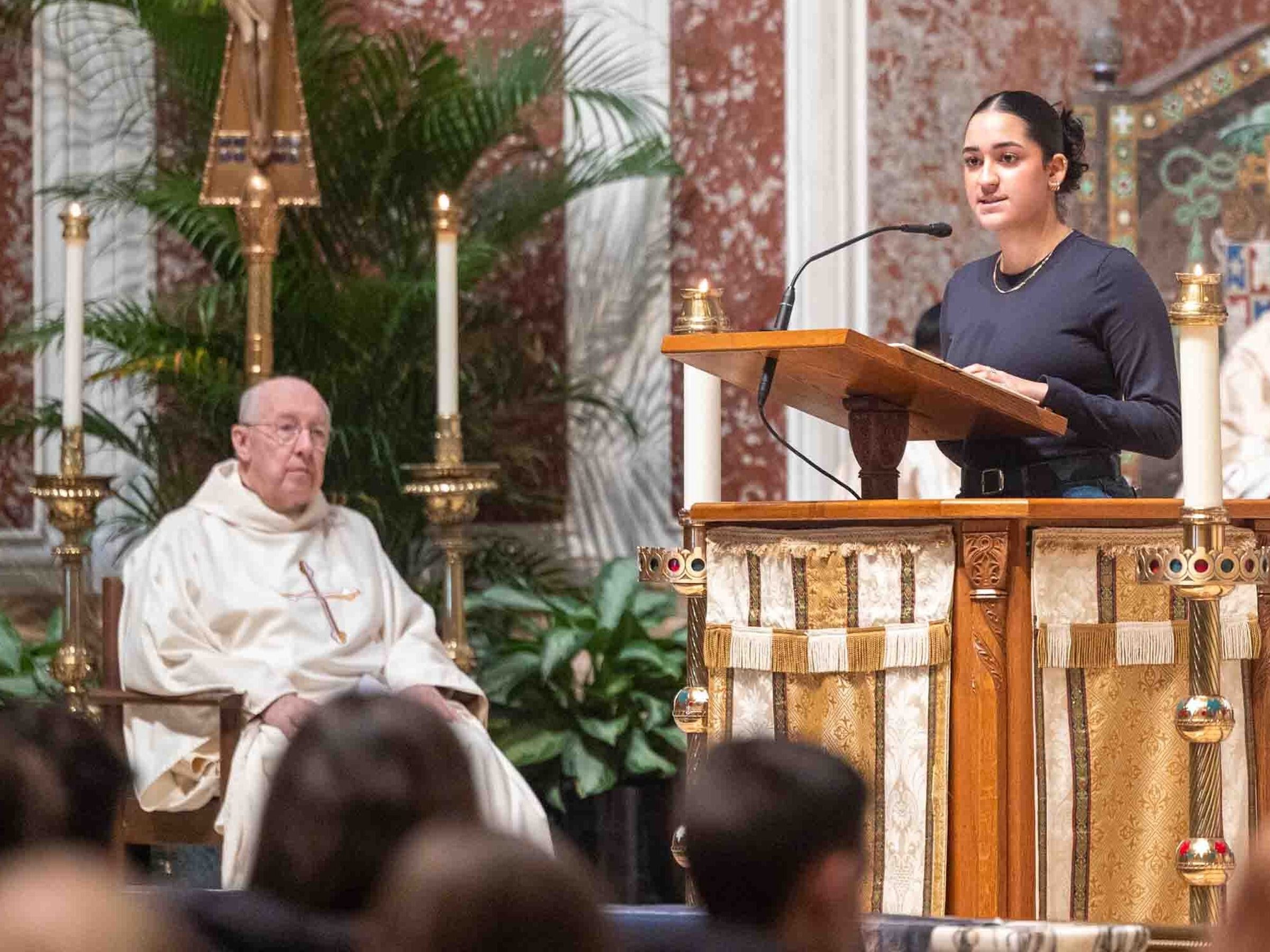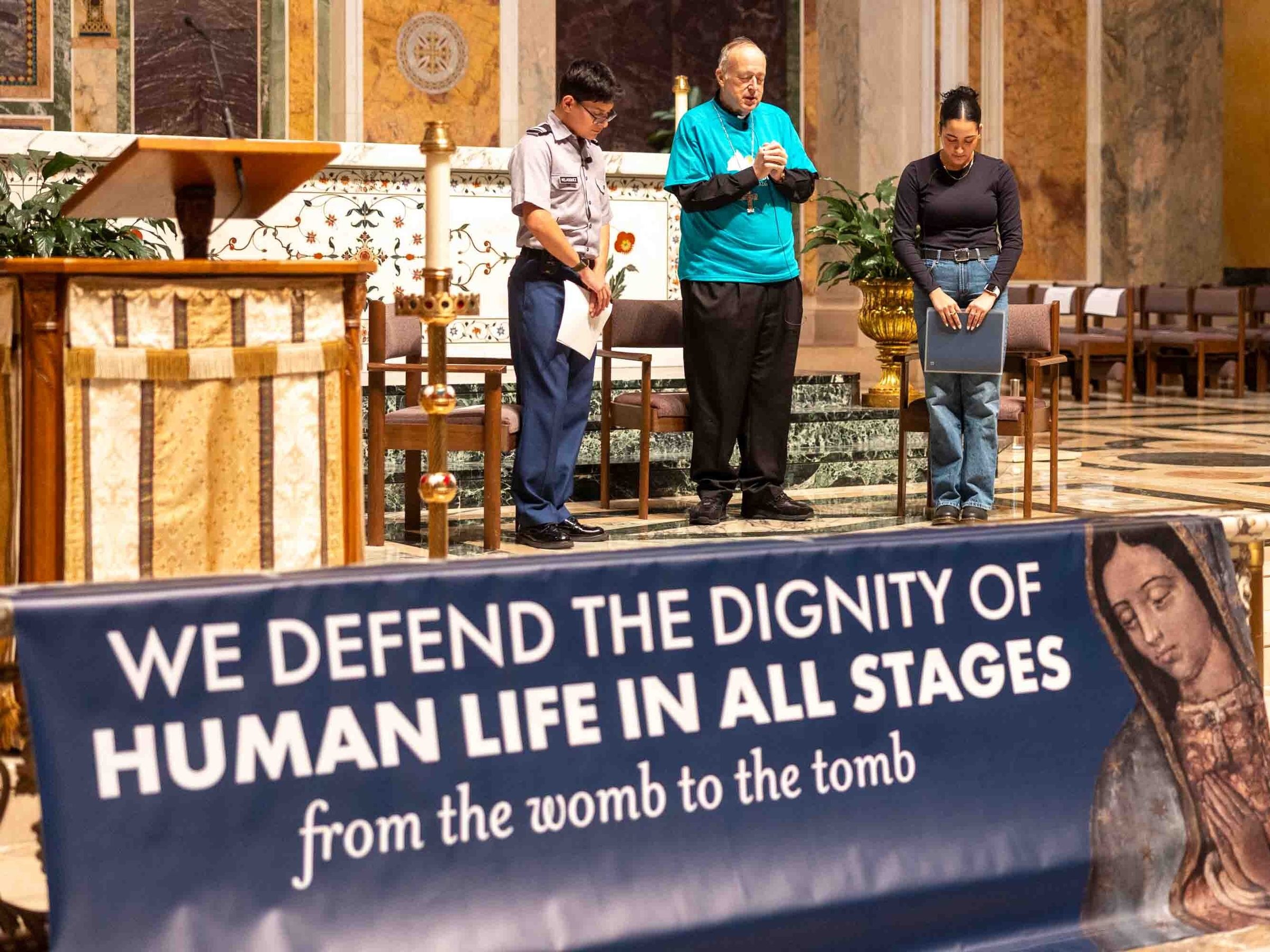 Before the Youth Mass for Life began Jan. 23 at the Cathedral of St. Matthew the Apostle in Washington, D.C., two high school juniors addressed hundreds of their peers and spoke about how they came to understand the value of human life.
