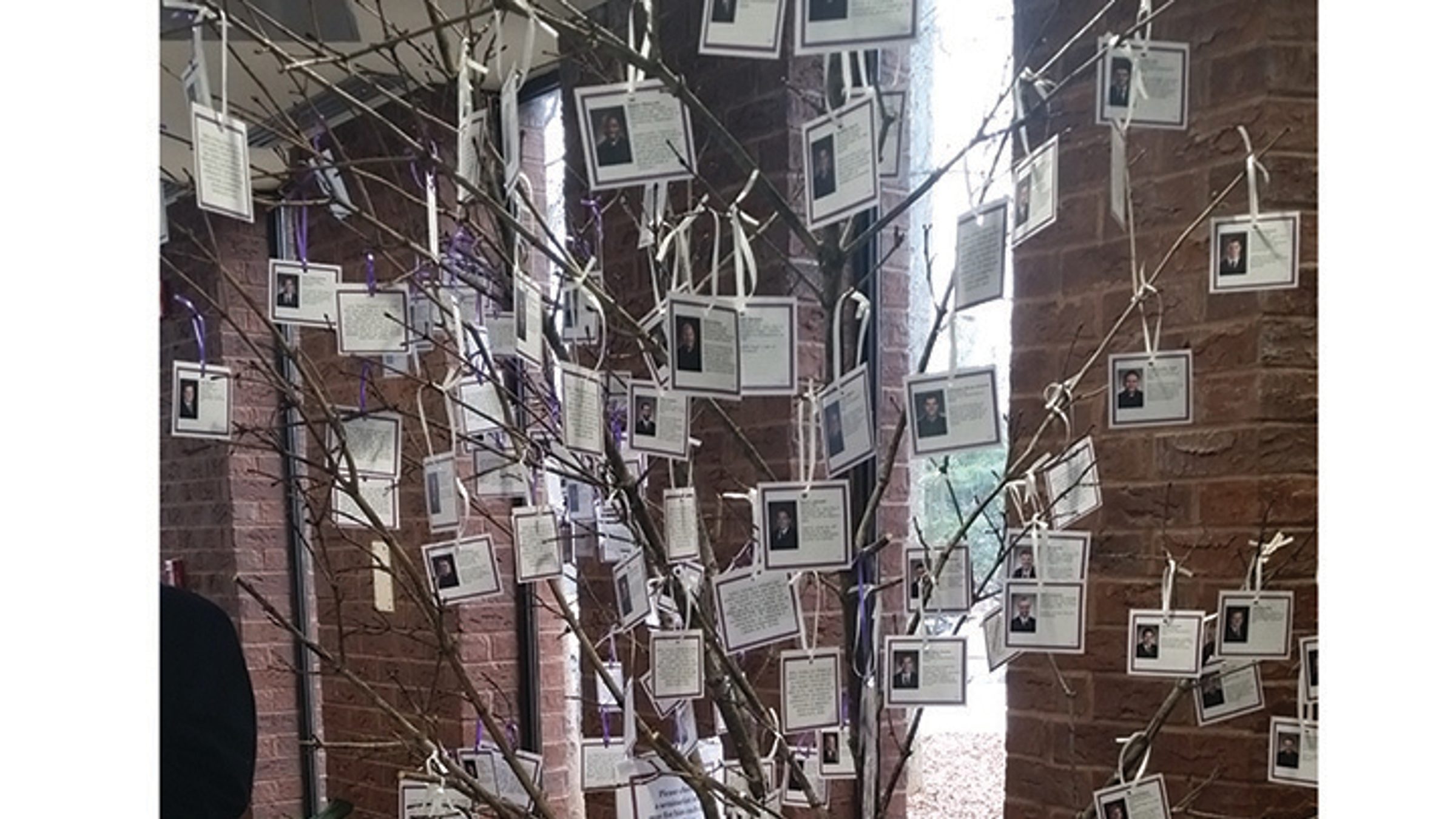 The first Vocations Tree took shape when Deacon Davey brought a bare branch into the church to create the display de Ribeaux had envisioned for the parish narthex. Karen Nelson, also a member of the ministry, created the first prayer cards by hand, printing, cutting and assembling each one individually.