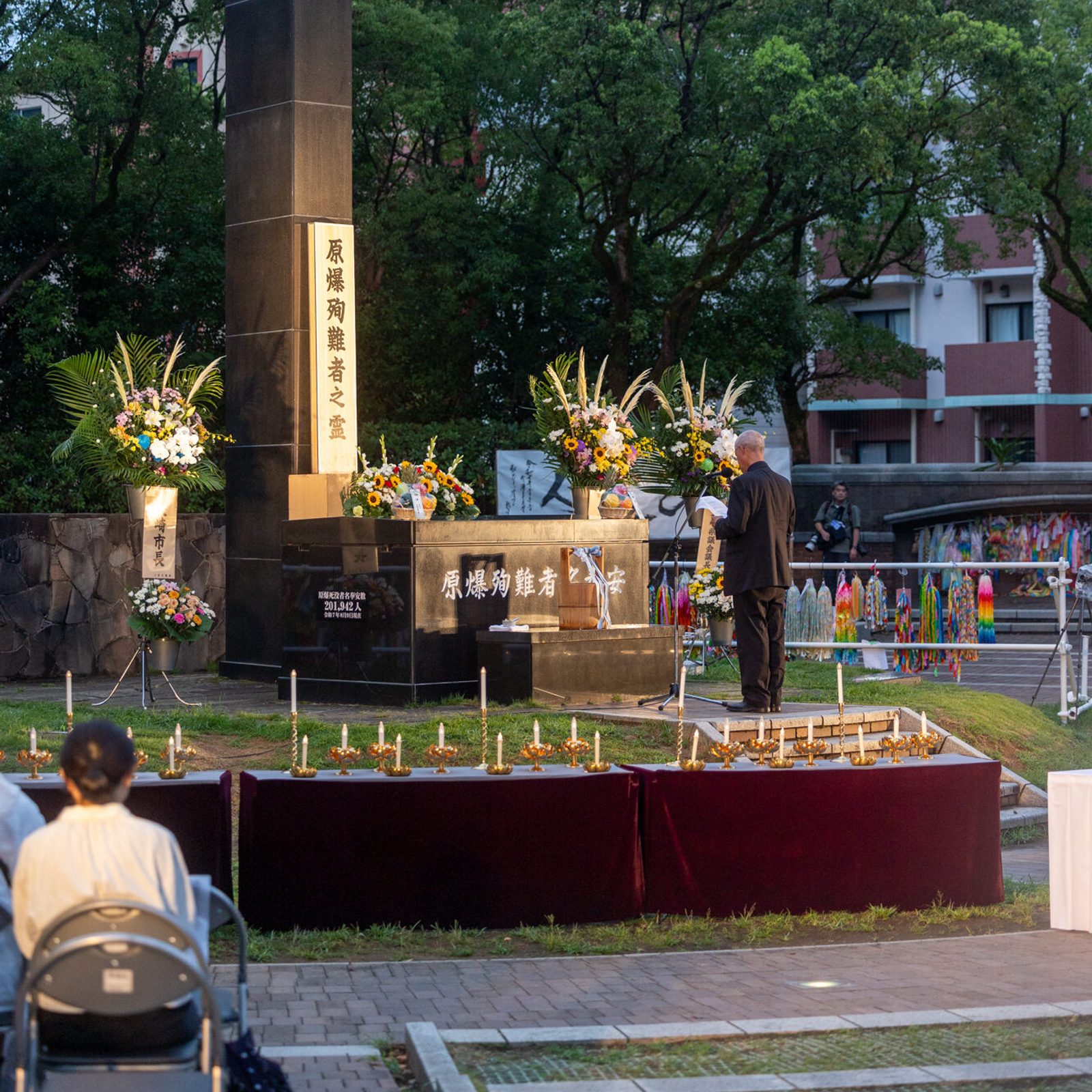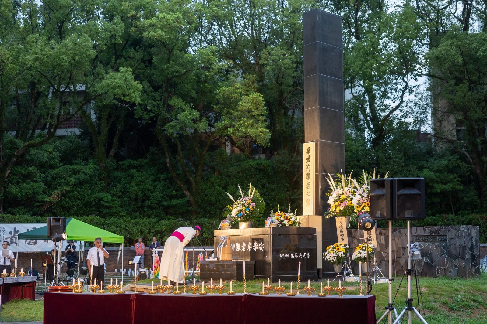 On the evening of Aug. 8, 2025, during the Memorial Service for the Victims of the Atomic Bombing, Archbishop Paul D. Etienne of Seattle offers "Words of Comfort" during the event at the Nagasaki Hypocenter Park. (Catholic Standard photo by Mihoko Owada)