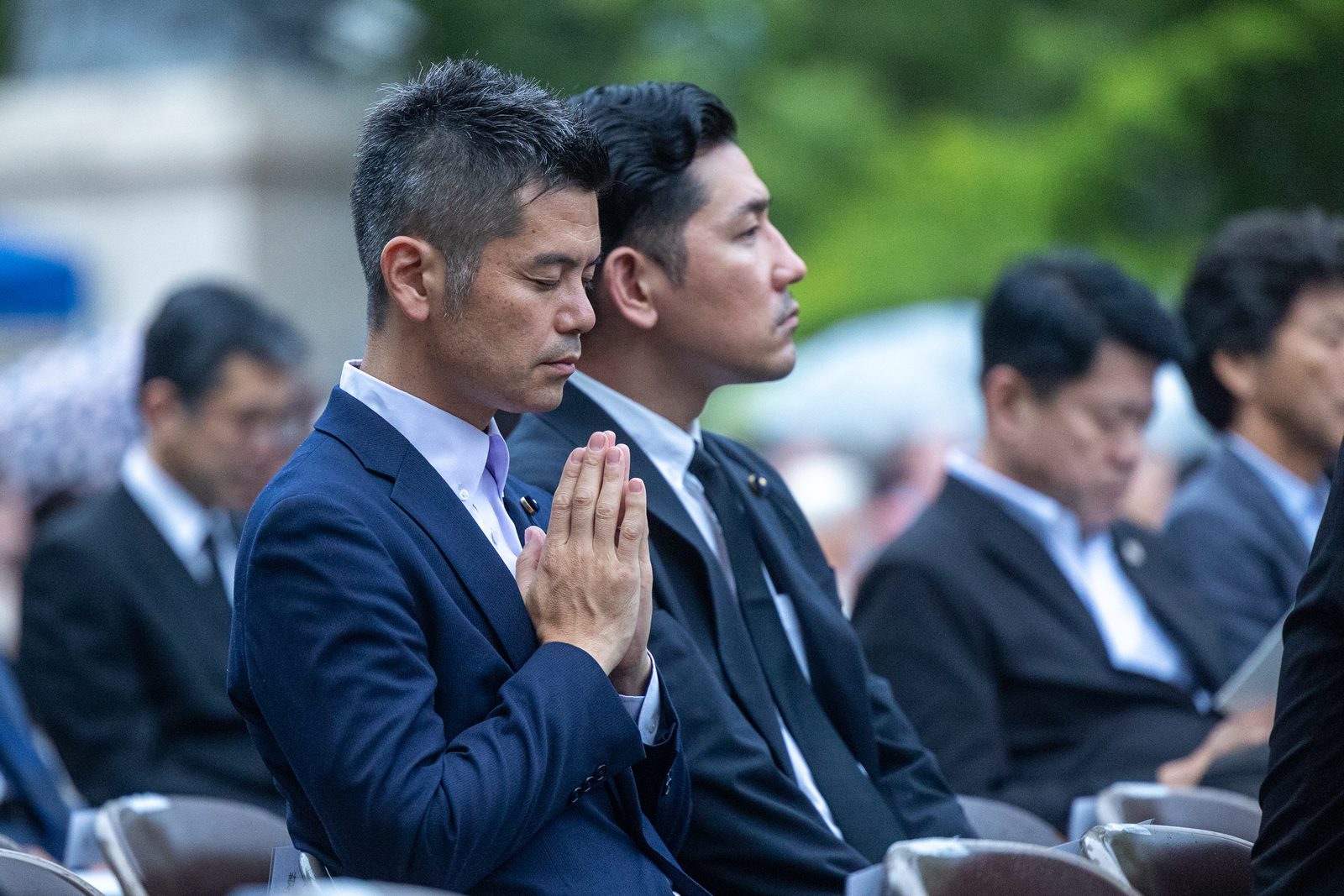 Shinto representatives offer a peace ritual during the Memorial Service for the Victims of the Atomic Bombing held in Nagasaki Hypocenter Park on Aug. 8, 2025. (Catholic Standard Photo by Mihoko Owada)
