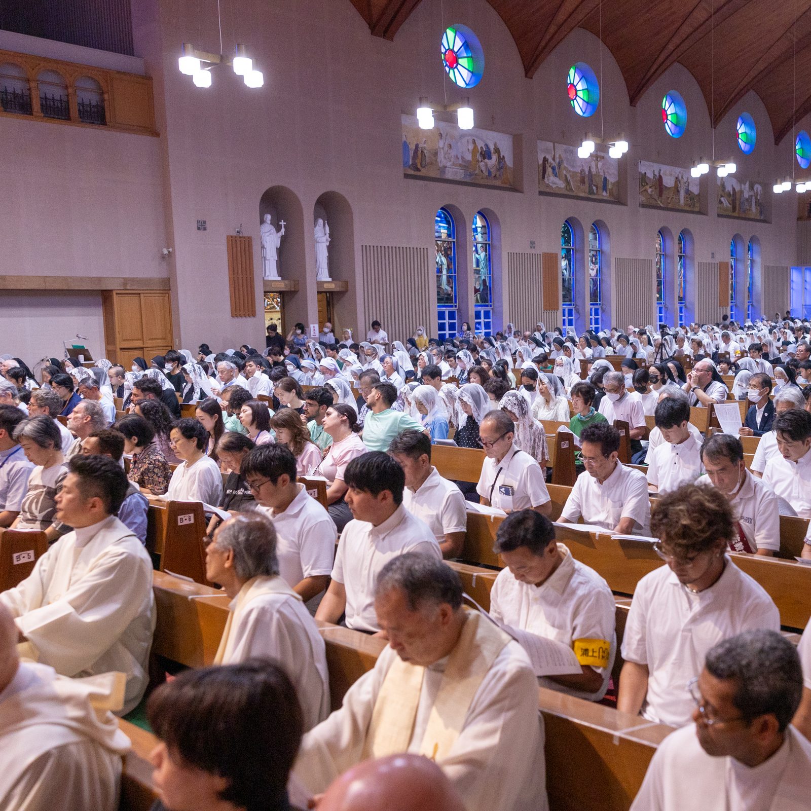 On August 10, 2025, Archbishop John C. Wester of Santa Fe, New Mexico, celebrates Mass for pilgrims of peace at Oura Cathedral in Nagasaki, a UNESCO World Heritage Site. Among the participants are U.S. college students joining the “Pilgrimage of Peace” commemorating the 80th anniversaries of the atomic bombings of Hiroshima and Nagasaki. (Catholic Standard photo by Mihoko Owada)