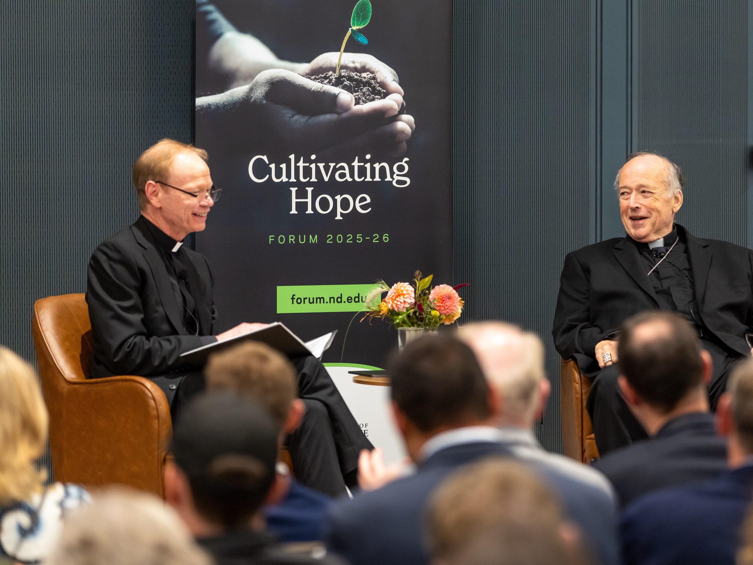 The archbishop of Washington joined Holy Cross Father Robert A. Dowd, Notre Dame’s president, on Oct. 17 for a conversation titled “Healing Our National Dialogue and Political Life.” The discussion was part of the 2025–26 Notre Dame Forum, whose theme, “Cultivating Hope,” echoes the Catholic Church’s Jubilee Year call for the faithful to live as “Pilgrims of Hope.”