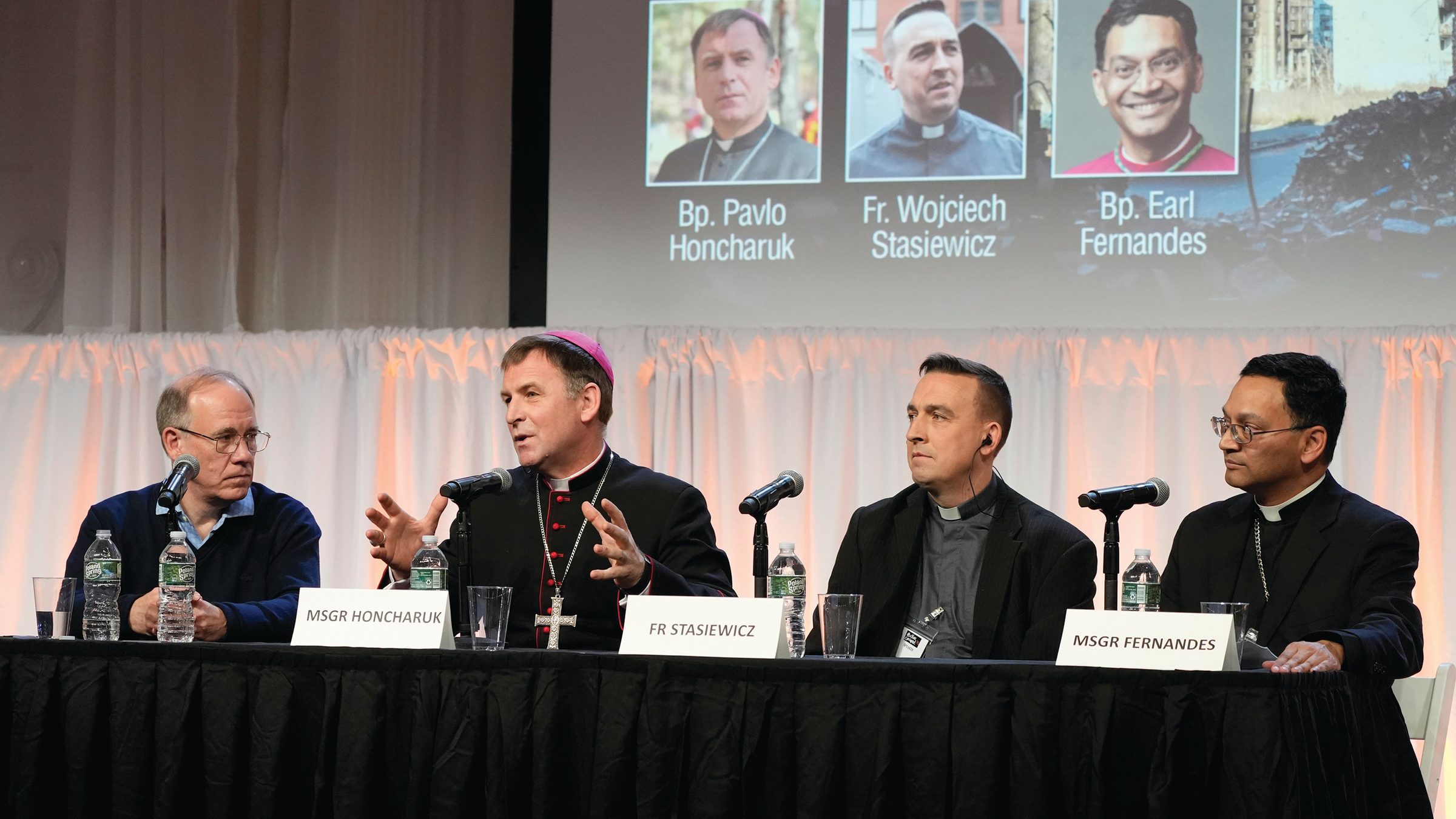 During the Feb. 14 panel discussion “A Home in the Storm,” moderated by Bishop Earl K. Fernandes of Columbus, Ohio, both Bishop Honcharuk and Father Stasiewicz spoke of the searing attacks not only on human life and society, but on the soul itself, as Russia’s war against Ukraine – initiated in 2014, and accelerated by full-scale invasion on Feb. 24, 2022 – now approaches the 12-year mark.