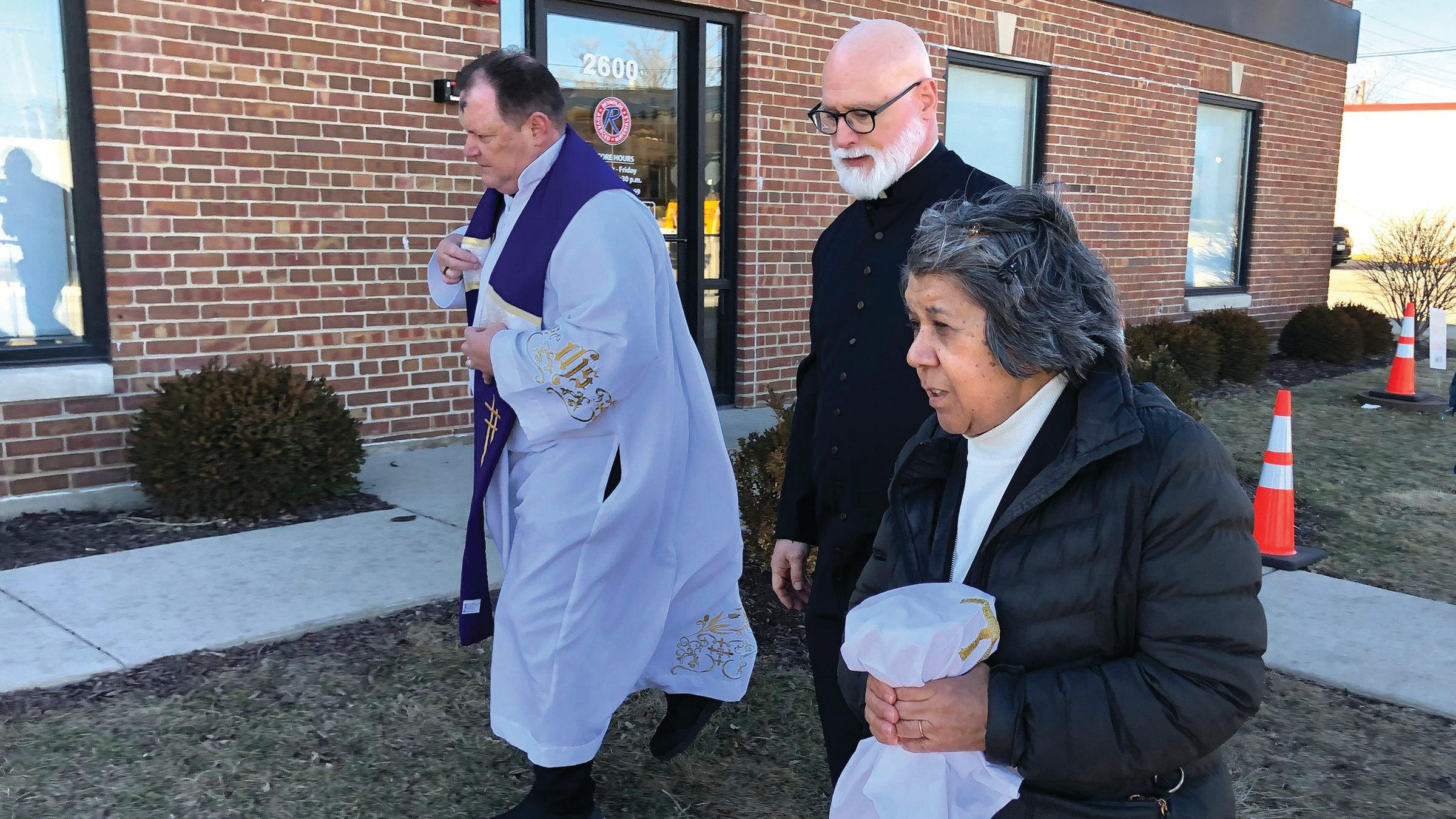 It was a clear, sunny, wind-swept afternoon, when the tiny procession of Claretian Father Paul Keller, Scalabrini Father Leandro Fossá and Society of Helpers Sister Alicia Gutierrez escorted by Illinois state troopers and local police made its way down a blocked off stretch to the entrance of the Broadview facility. Their confreres, men and women religious from other orders along with diocesan clergy and a Lutheran pastor, saw them off with a blessing, hands outstretched.