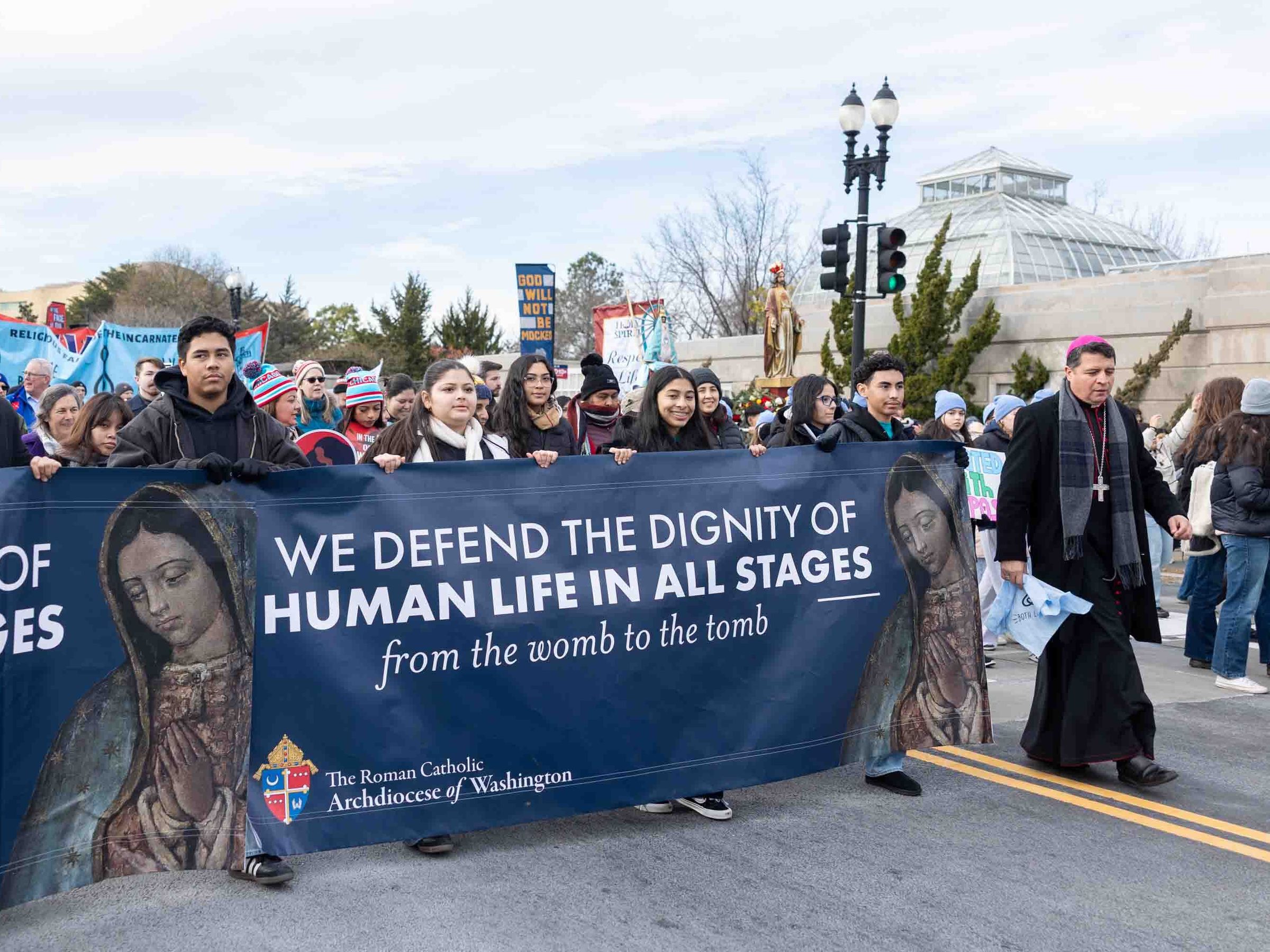 She read the pope’s letter to the march’s participants, imparting his papal blessing and assuring them “of my spiritual closeness as you gather for this eloquent public witness to affirm that the protection of the right to life constitutes the indispensable foundation of every other human right.”