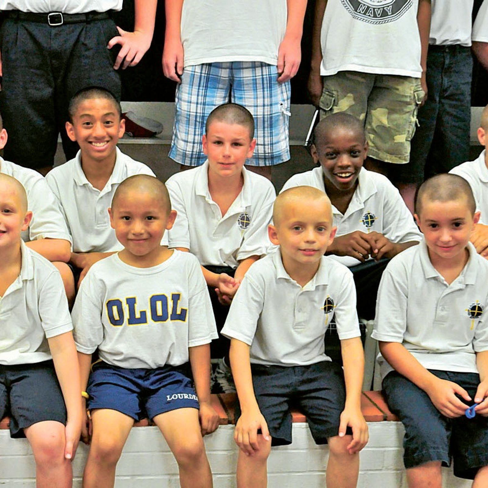 Later, Truax was diagnosed with leukemia, and to show solidarity with their teacher, 71 boys attending Lourdes and another dozen recent graduates had their heads shaved. During a Skype communication in the school library with their teacher, the smiling and newly bald boys surprised Truax, who exclaimed, “Oh my goodness, you guys are rock stars!”