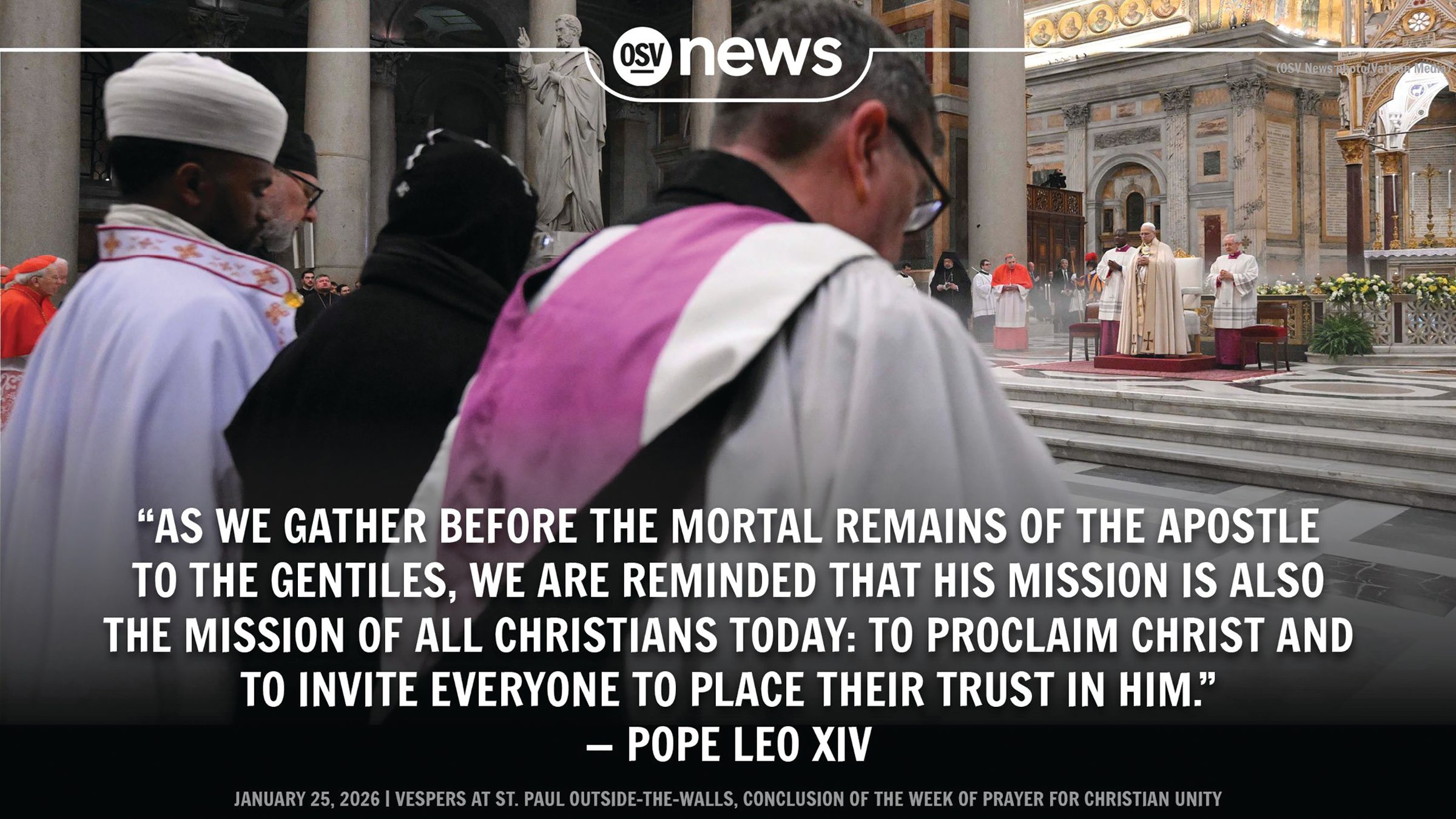 The following is the full text of Pope Leo XIV’s homily given Jan. 25, 2026, the feast of the conversion of St. Paul the Apostle, during an ecumenical celebration of vespers at the Basilica of St. Paul Outside-the-Walls in Rome. The evening prayer service marked the conclusion of the 59th Week of Prayer for Christian Unity, and representatives of other Churches and ecclesial communities took part.